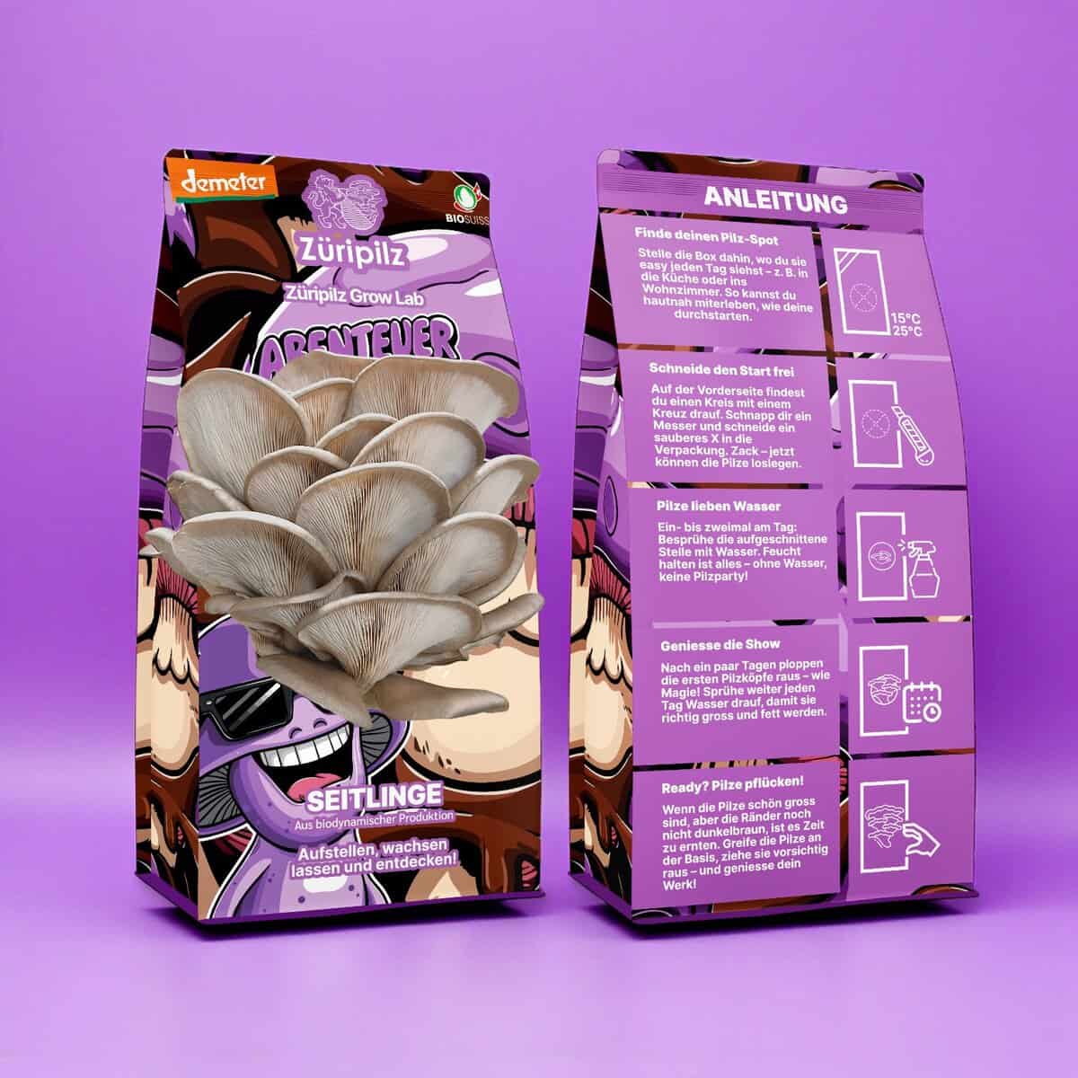 Aus unserer Kooperation mit Züripilz findest du nun auch ihre Pilzzuchtsets bei uns. Die Designs variieren – du erhältst eines davon als Überraschungs-Edition; der Inhalt bleibt immer gleich (Austernseitling).
