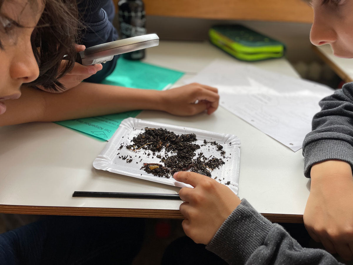 Dans les classes de l'école, leurs propres habitudes de consommation sont traquées et comparées les unes aux autres. La décision quant aux déchets qui conviennent au lombricompost et ceux qui ne le sont pas est discutée et déterminée en classe. Cela signifie que différents objets se retrouvent dans le composteur, qui sont décomposés à des vitesses différentes ou pas du tout. Les étudiants acquièrent de nouvelles connaissances, peuvent remettre en question les décisions qu'ils ont prises et renforcer leur compréhension mutuelle. Les vers suscitant des émotions, les élèves apprennent et expérimentent avec tous leurs sens comment les déchets organiques sont transformés en précieux humus. Dans un processus itératif tout au long de l'année scolaire, les questions ouvertes des élèves sont examinées et répondues. Vos pensées et vos idées peuvent également être transportées dans d'autres domaines de la société. Que jette-t-on à la poubelle ? Pouvons-nous réduire nos propres déchets ?
