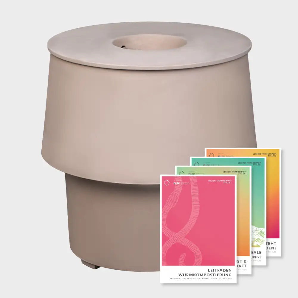 Caisse d'action lombricompost pour la salle de classe pour la mise en œuvre d'un enseignement axé sur l'EDD pour les cycles 1-3. Le matériel d'apprentissage correspondant a été développé en collaboration avec la FH Nordwestschweiz.