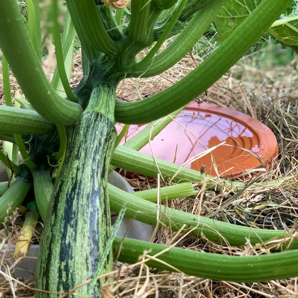 Notre Gaia XXL est idéal pour les massifs surélevés, les jardinières et les massifs de jardin. Avec une capacité de 10 litres, il est parfait pour les grandes plantes et les longs intervalles d'arrosage. Il suffit de l'enterrer complètement, de le remplir d'eau et il prendra le relais de l'arrosage naturel directement aux racines.
