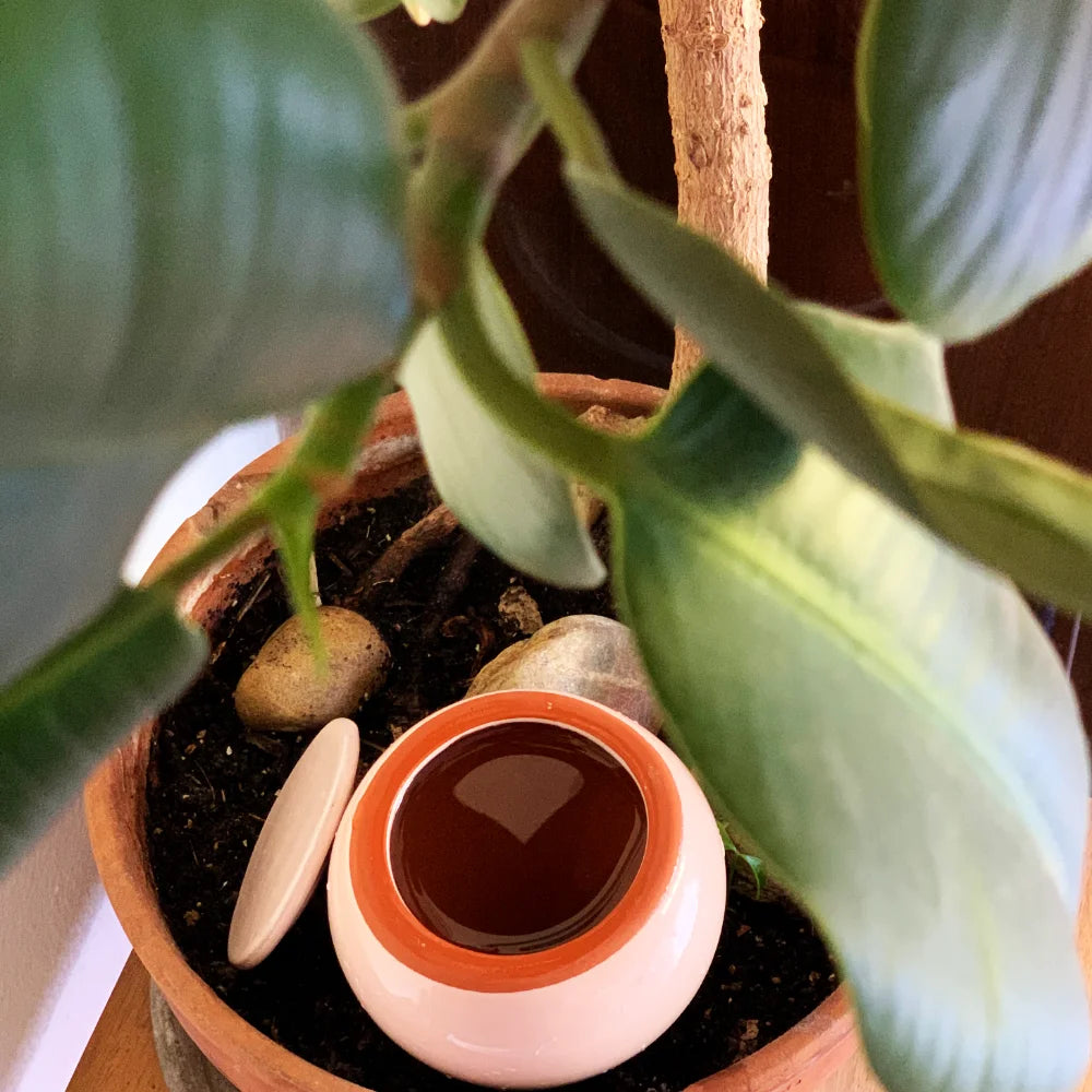 Unsere TERRA-Olla ist ideal für Pflanzentöpfe mit einem Durchmesser von ca. 15–30 cm. Einfach in die Erde stecken, mit Wasser befüllen – und schon übernimmt sie die natürliche Pflanzenbewässerung.